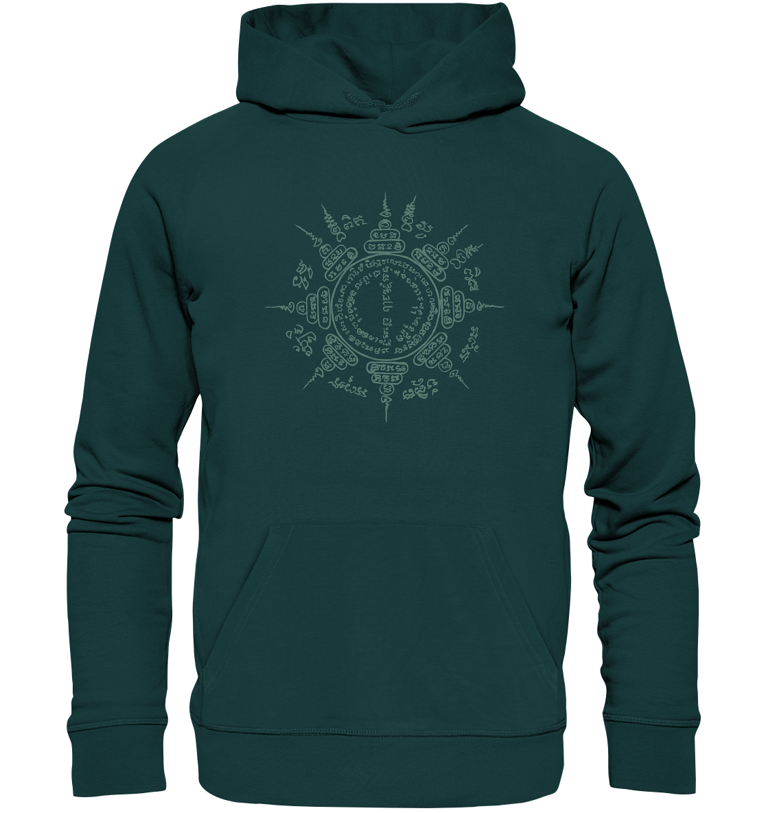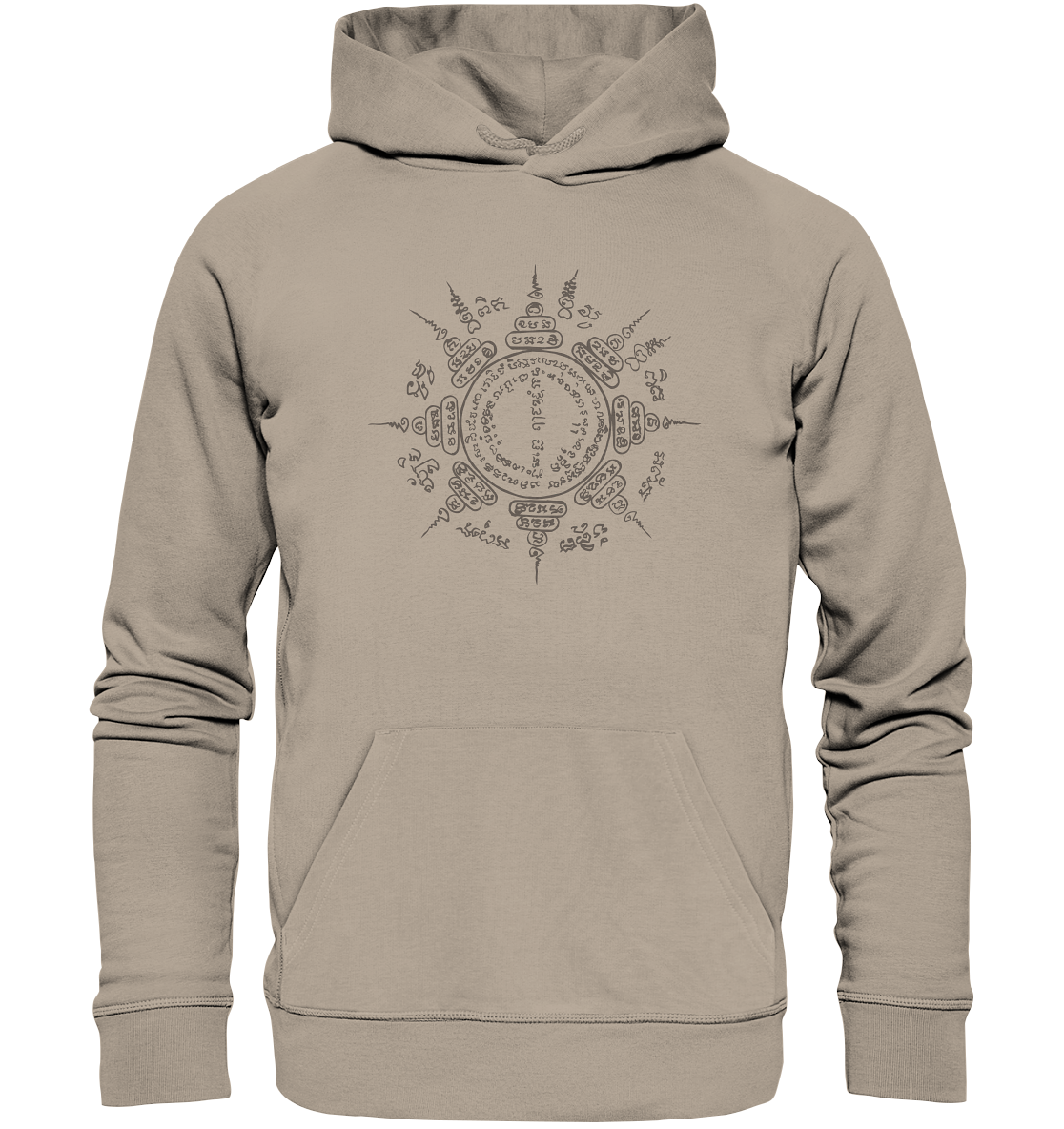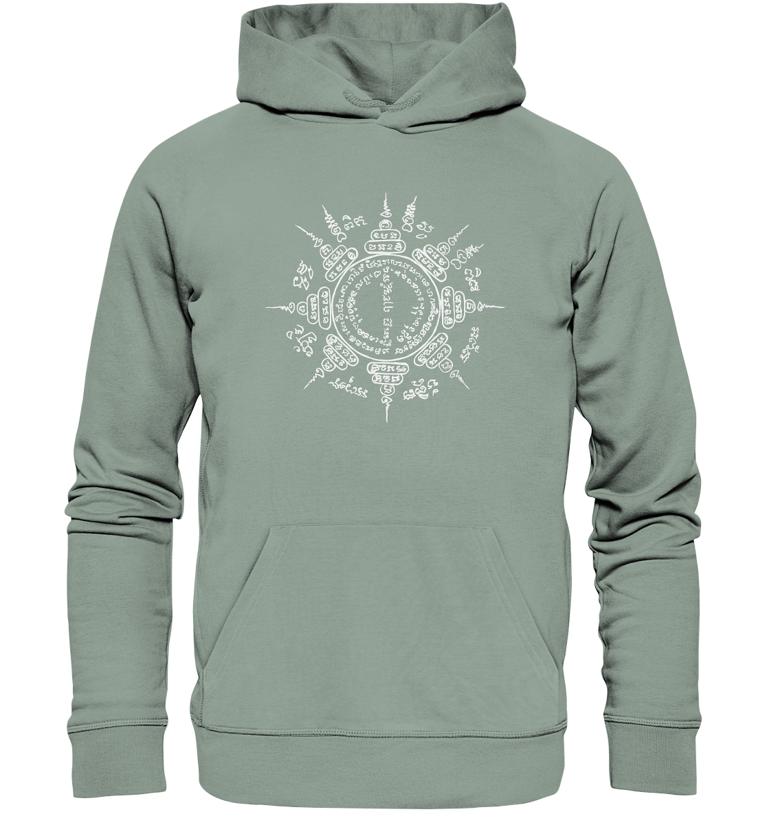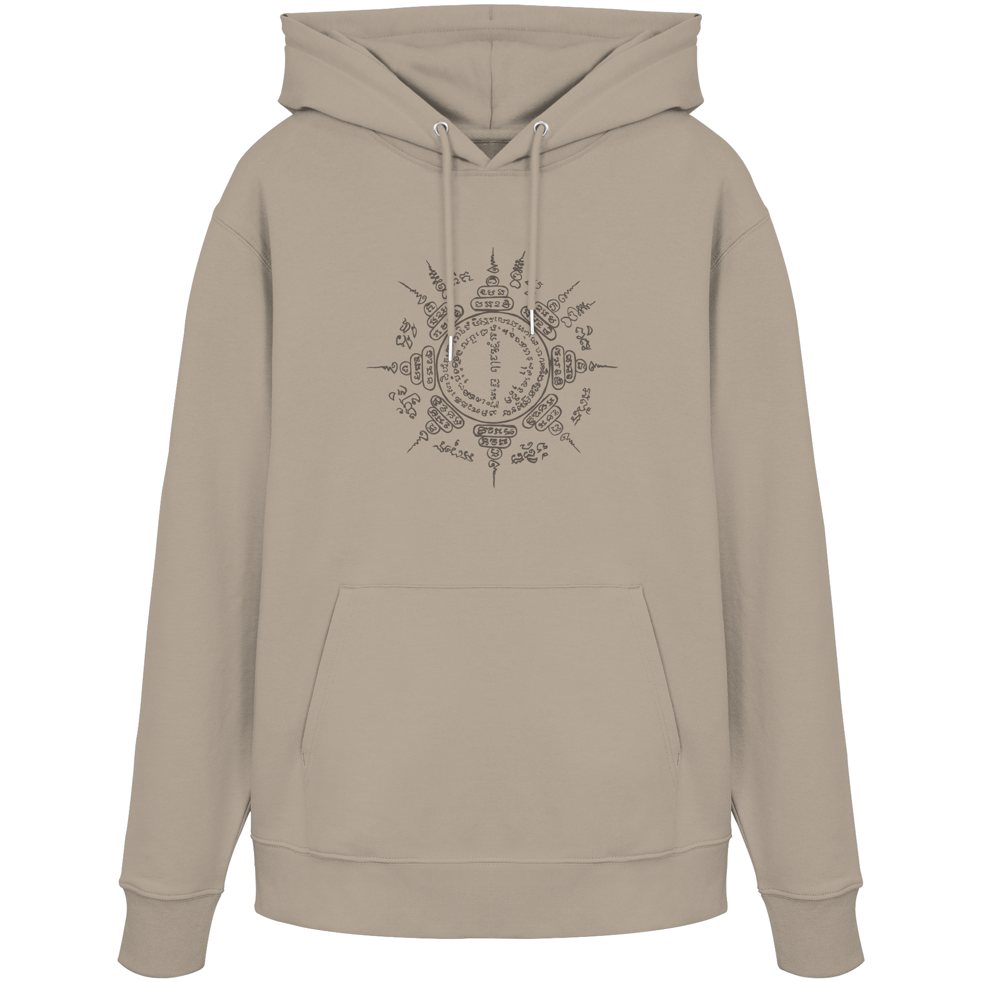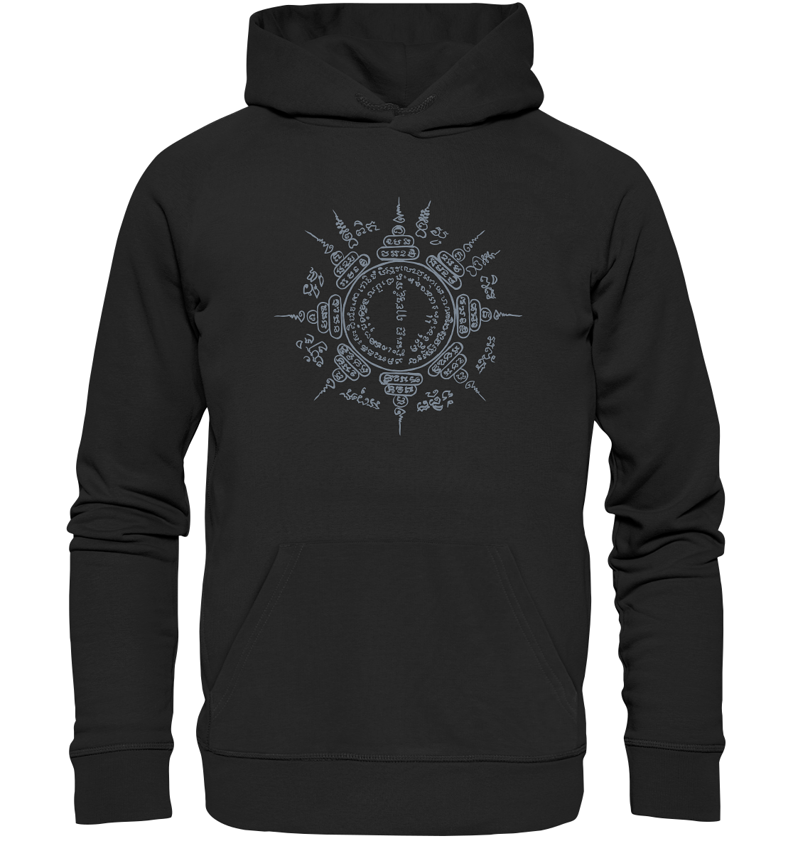 The "Paed Tidt" hoodie is not just a piece of clothing – it is a symbol of protection and guidance. The eponymous Sak Yant displays eight mantras that work in all directions and accompany you on your path – wherever you go.